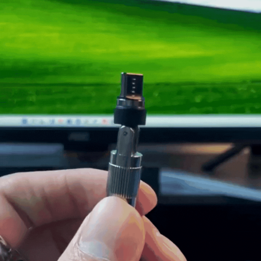 Experience a new level of charging convenience. This innovative magnetic cable features a rotating head, allowing it to connect at any angle for effortless charging. It snaps into place instantly, providing a secure connection while protecting your device's charging port from wear and tear.