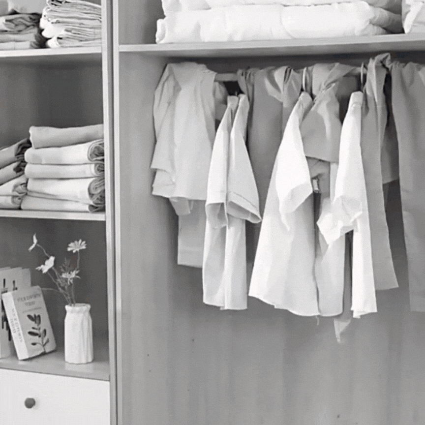 Say goodbye to clutter and hello to an organized closet. This innovative hanging shelf is your perfect solution for tidying up clothes, offering a simple way to transform a messy wardrobe into a neat, organized space.